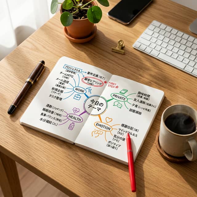 福原です、 あなたはこんな経験、ありませんか? 「よし、やるぞ」と決めたはずなのに、デスクに座ると指が止まる。 コーヒーを流し込んでも、エナジードリンクを飲んでも、脳に霧がかかったような「重たい感覚」が消えない。 ビジネスで責任が重くなり、タスクが複雑化してくると、この「朝の足踏み」は致命的なロスになります。 でも、大丈夫です。 ただ、「脳の整理」が追いついていないだけなのです。 今日は、私が実践し、多くのビジネスマンが劇的な変化を実感している、 朝10分の「モーニング・マインドマップ」 というコンディション術をお伝えします。 簡単なお絵かきをするだけで仕事がスムーズに進みますので、期待しながら読み進めてください。 なぜ、あなたの「やる気」は行方不明になるのか?ビジネスマンの脳内は、常にノイズで溢れています。